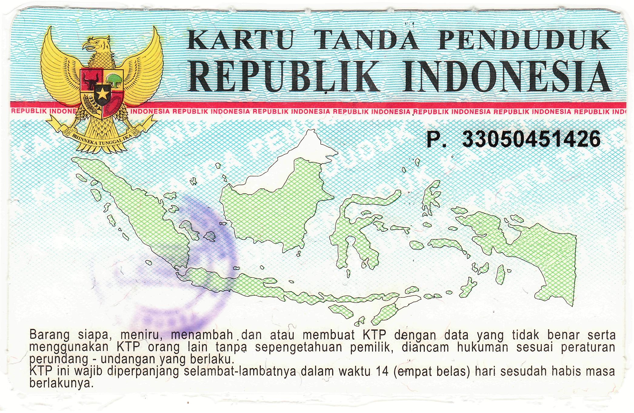 Kartu Tanda Penduduk (KTP) adalah identitas resmi penduduk Indonesia sebagai bukti diri yang diterbitkan oleh instansi pelaksana yang berlaku di seluruh wilayah Negara Kesatuan Republik Indonesia. Kartu ini wajib dimiliki bagi Warga Negara Indonesia (WNI) dan Warga Negara Asing (WNA) yang memiliki Izin Tinggal Tetap (ITAP) yang sudah berumur 17 tahun atau sudah pernah kawin atau telah kawin. Anak dari orang tua WNA yang memiliki ITAP dan sudah berumur 17 tahun juga wajib memilki KTP. KTP bagi WNI berlaku selama lima tahun dan tanggal berakhirnya disesuaikan dengan tanggal dan bulan kelahiran yang bersangkutan. KTP bagi WNA berlaku sesuai dengan masa Izin Tinggal Tetap. Khusus warga yang telah berusia 60 tahun dan ke atas akan mendapat KTP seumur hidup yang tidak perlu diperpanjang setiap lima tahun sekali. Mengurus KTP sekarang ini sudah jauh lebih mudah daripada 30 tahun lalu. Pengalaman saya waktu mengurus KTP tahun 70-an membutuhkan waktu lebih dari 6 bulan. Sekarang sehari saja jadi. Sama halnya dengan sulitnya urus paspor jaman dulu, setelah ada paspor masih perlu exit permit. Susahnya mengurus dokumentasi atau tanda kenal diri masa lalu kita sudah alami.
