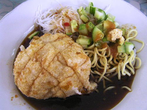 tumblr_lfbk2p5Ges1qd0bc5o1_500Sungguh suatu kebahagiaan bagi kita masih bisa menikmati makanan khas Palembang yang dibuat dari ikan tengiri dan tepung, juga dari Jambi dan Bangka yang masing masing memiiki ciri khas tersendiri. Sore ini saya menikmati mpek mpek goreng dibawa anak saya dari Jambi. Justru saat makan ini terus melayang kenangan masa lalu karena hampir 6 bulan saya tinggal di Jambi, karena ada sebuah kapal saya naik dok dan perbaikan di sana. Hampir tiap hari kami makan mpek mpek karena murah bisa bikin sendiri. Ikan dan udang tinggal serok saja dari sungai.